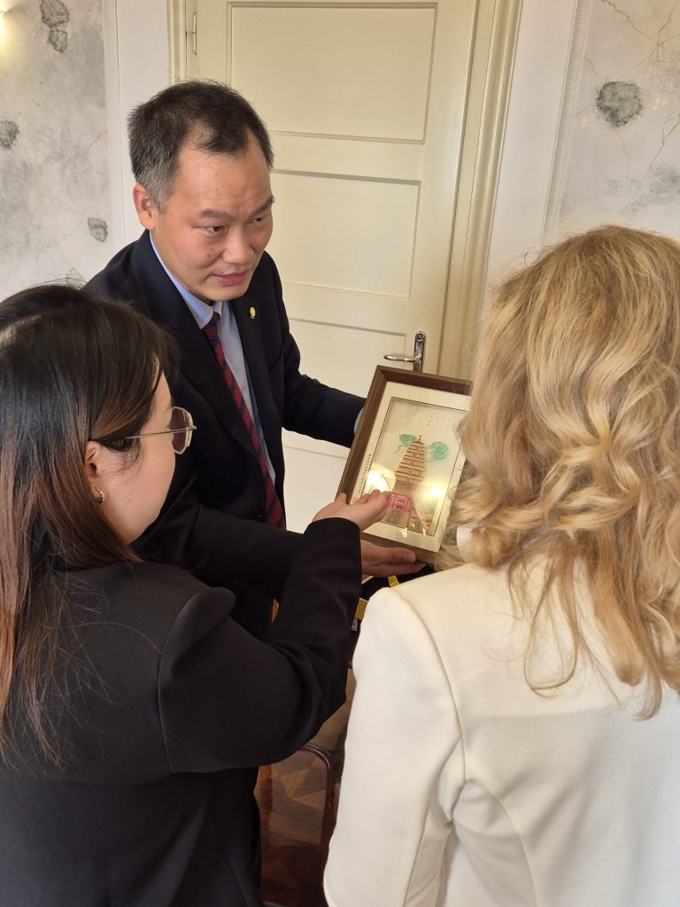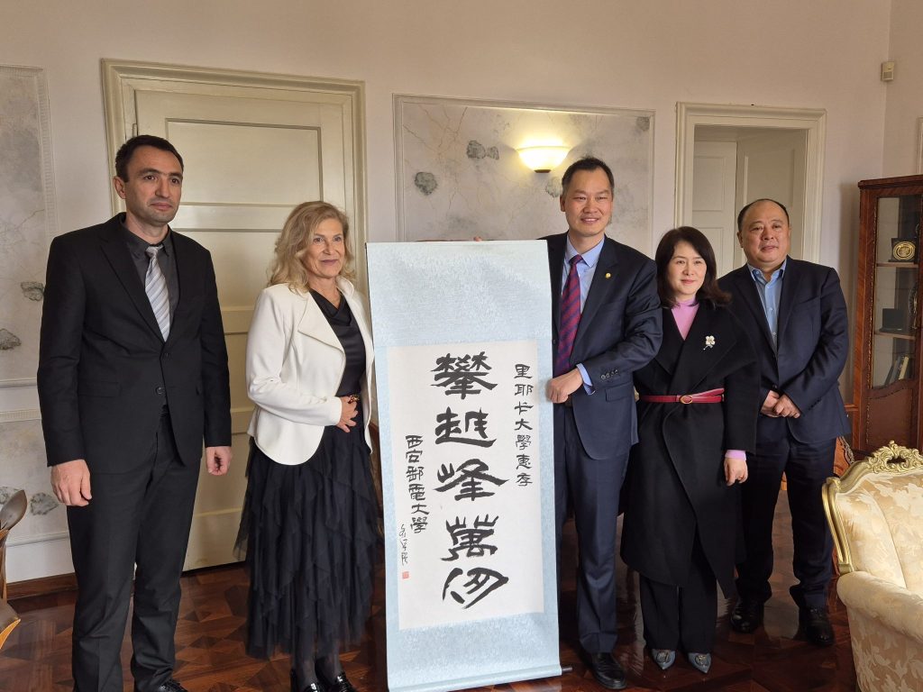 To further develop partnership and mutual friendship, XUPT presented the University of Rijeka with a symbolic gift: a personalized piece of silk with the names of the two universities written in calligraphy, with wishes for successful and long-term cooperation.