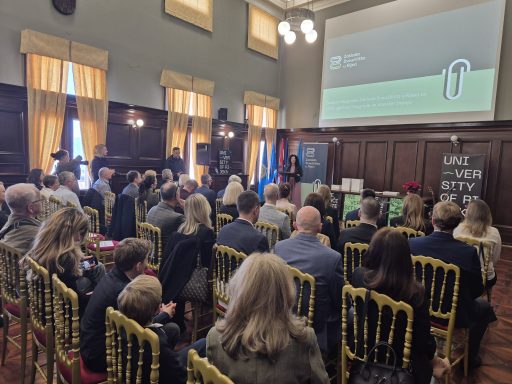 U prepunoj Auli Magni u zgradi Rektorata danas su svečano dodijeljene nagrade Zaklade Sveučilišta u Rijeci za 2024. godinu. Svečanu dodjelu otvorila je uvodnom riječi ravnateljica Zaklade prof. dr. sc. Bojana Ćulum Ilić, nakon čega su uslijedili pozdravni govori v. d. rektora Sveučilišta u Rijeci prof. dr. sc. Davora Vašičeka, riječke gradonačelnice Ive Rinčić te … Nastavi čitati Dodijeljene nagrade Zaklade za 2024. godinu