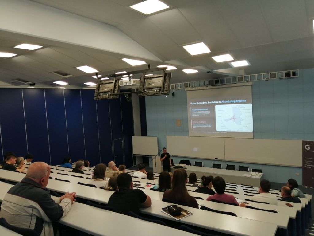 Dinamično je bilo i na Građevinskom fakultetu gdje je otvorena izložba fotografija intrigantnog naslova „Petar Petru gradi petlje“ te održano predavanje o izazovima i mogućnostima primjene umjetne inteligencije u inženjerstvu.