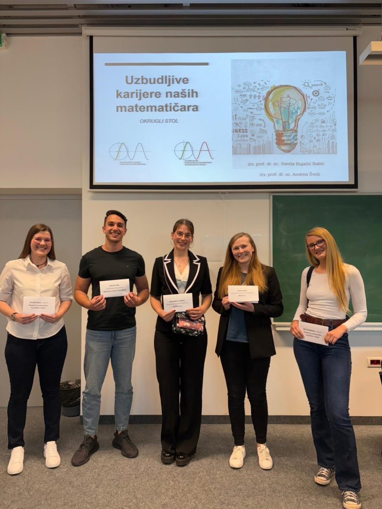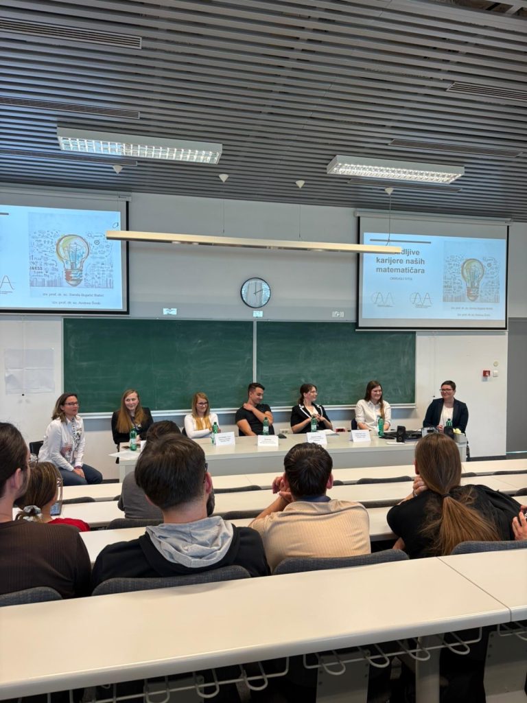 Na okruglom stoku na Fakultetu za matematiku magistri matematike, alumni Fakulteta, podijelili su svoja iskustva o studiranju, prvim zaposlenjima, karijernim mogućnostima i vrijednosti matematičkog obrazovanja na tržištu rada. Sudjelovanjem asistenata i studenata dodatno je prikazana dinamična i poticajna akademska zajednica Fakulteta. Zahvaljujemo svim sudionicima i moderatoricama na zanimljivom i korisnom susretu ispunjenom vrijednim informacijama i inspiracijom.