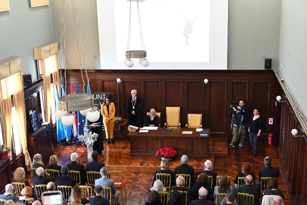 Velika mi je čast i iskreno zadovoljstvo što vas danas mogu pozdraviti na ovom tradicionalnom blagdanskom okupljanju Sveučilišta u Rijeci – događaju koji nas svake godine okuplja u ozračju zahvalnosti, zajedništva i međusobnog uvažavanja. Ove godine, zbog ranije vam poznatih okolnosti, Dies Academicus nije održan u svojem redovnom proljetnom terminu pa naše nagrade i priznanja dodjeljujemo danas, jer vi ste, dragi laureati, naši najbolji od najboljih! Godina na izmaku bila je za upravu Sveučilišta u Rijeci intenzivna i izazovna, no od kada sam, nakon 8 godina na mjestu prorektora za financije i poslovanje, preuzeo mandat vršitelja dužnosti rektora, imao sam svesrdnu podršku svojih suradnika i stručnih službi Rektorata, kojima ovim putem želim iskreno zahvaliti.