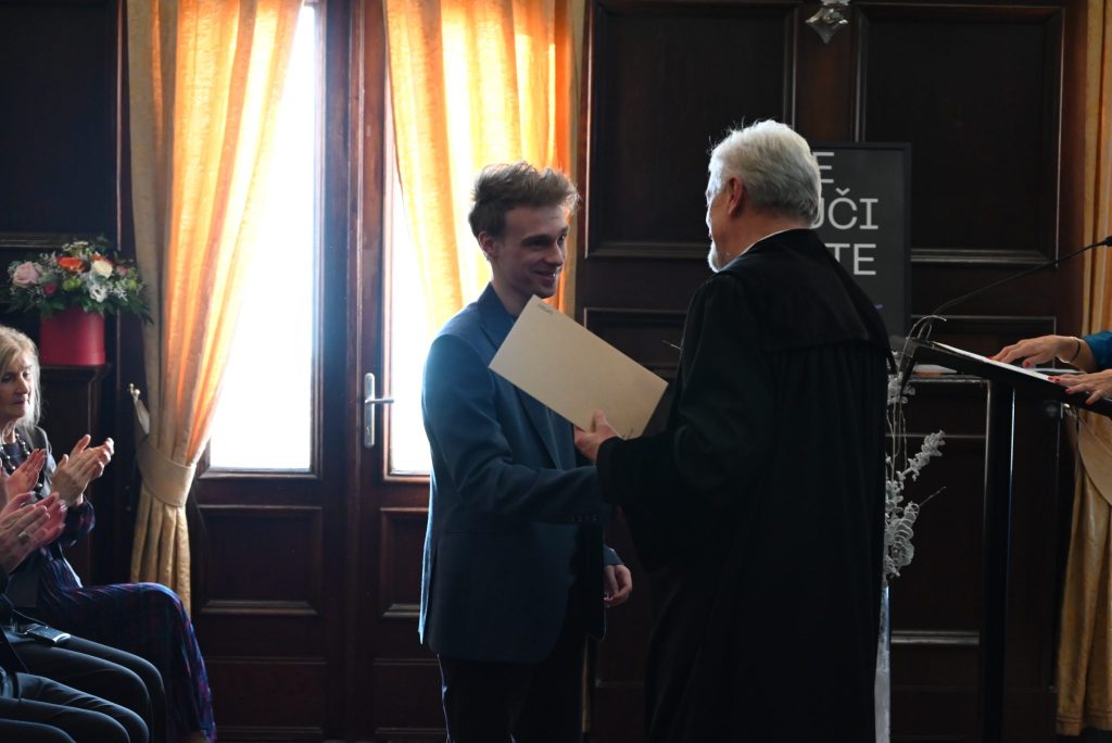 Vršitelj dužnosti rektora Sveučilišta u Rijeci prof. dr. sc. Davor Vašiček proglasio je u četvrtak, 18. prosinca 2025. studentom generacije Jakova Tomasića, alumnusa sveučilišnog diplomskog studija Računarstvo Tehničkog fakulteta Sveučilišta u Rijeci. Jakov je proglašen, kako je istaknuo rektor, najboljim od najboljih, u sklopu dodjele Rektorovih nagrada za izvrsnost, koje se, među ostalim dodjelama nagrada i priznanja dodijeljene na tradicionalnom blagdanskom prijmu na Rektoratu Sveučilišta.