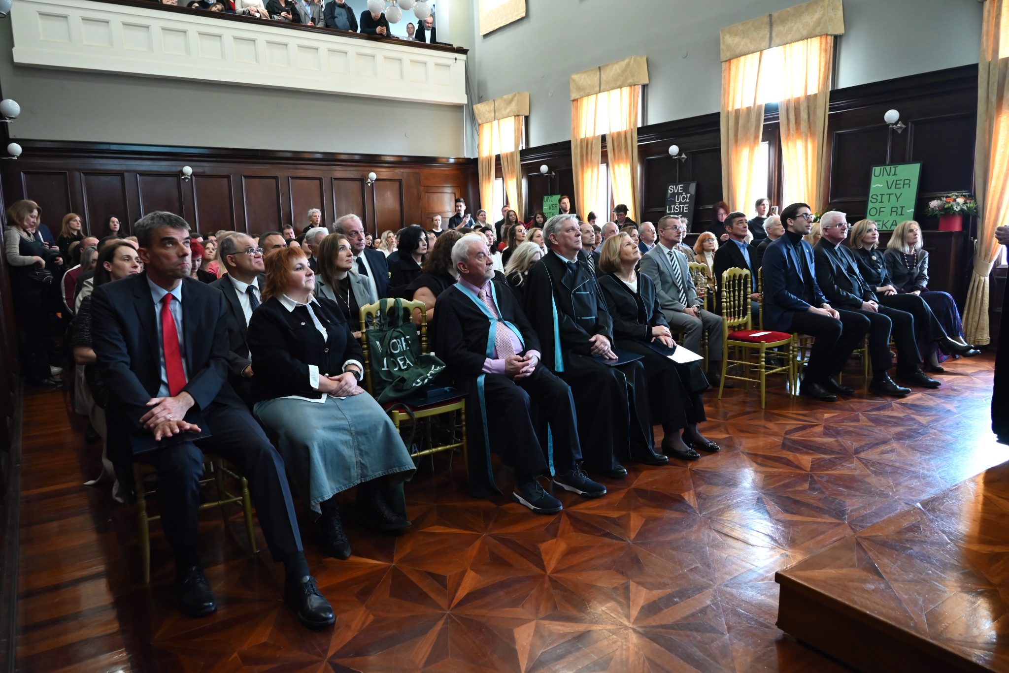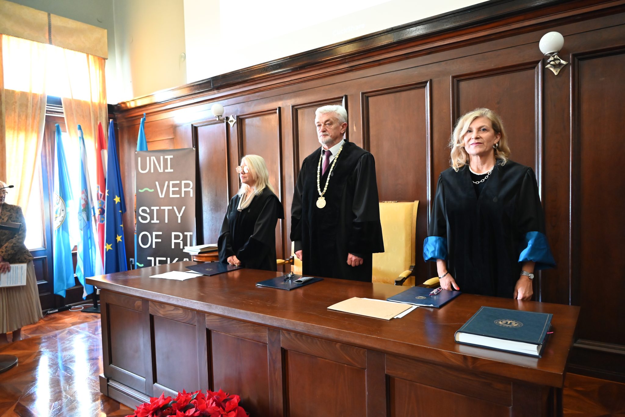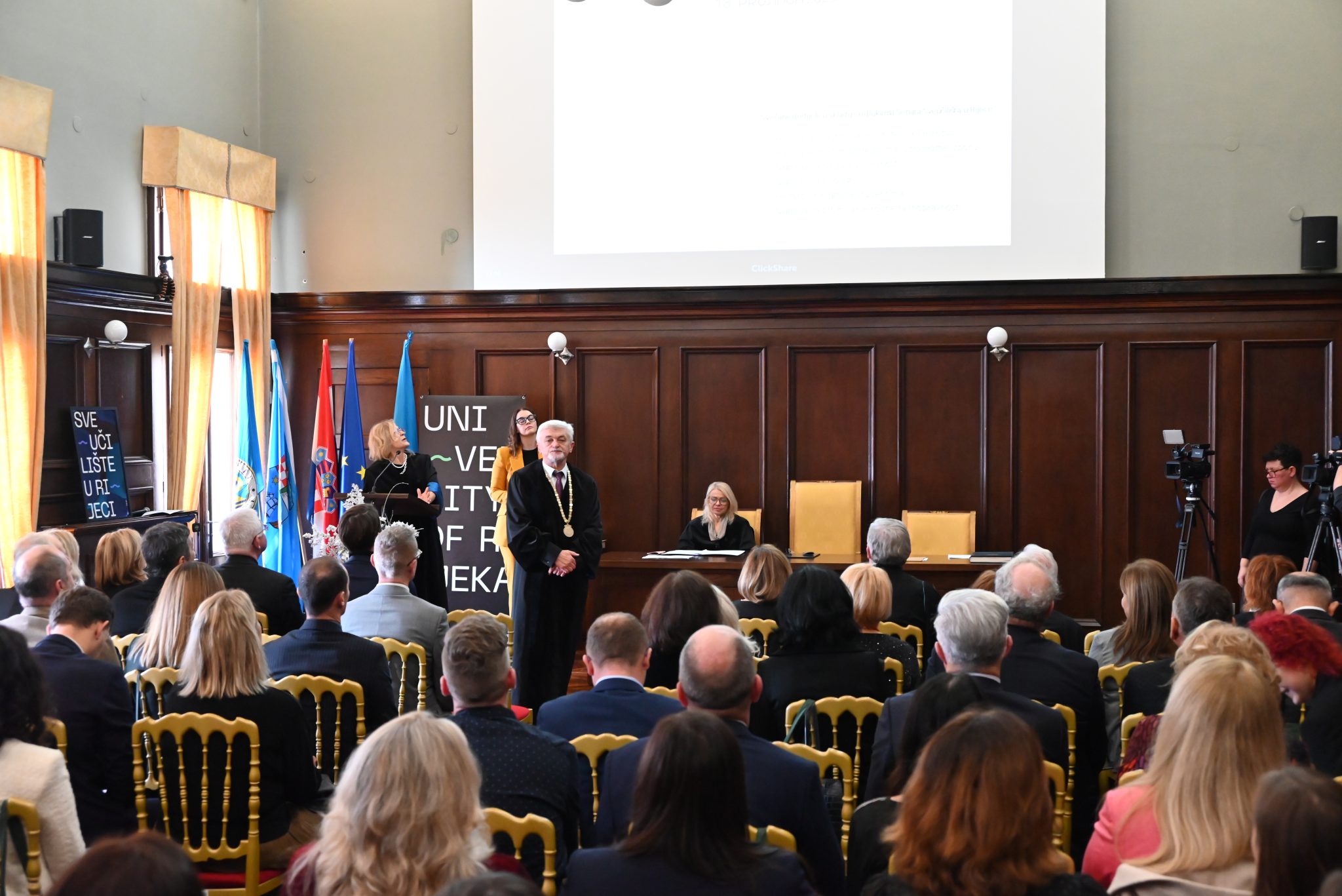 Velika mi je čast i iskreno zadovoljstvo što vas danas mogu pozdraviti na ovom tradicionalnom blagdanskom okupljanju Sveučilišta u Rijeci – događaju koji nas svake godine okuplja u ozračju zahvalnosti, zajedništva i međusobnog uvažavanja. Ove godine, zbog ranije vam poznatih okolnosti, Dies Academicus nije održan u svojem redovnom proljetnom terminu pa naše nagrade i priznanja dodjeljujemo danas, jer vi ste, dragi laureati, naši najbolji od najboljih! Godina na izmaku bila je za upravu Sveučilišta u Rijeci intenzivna i izazovna, no od kada sam, nakon 8 godina na mjestu prorektora za financije i poslovanje, preuzeo mandat vršitelja dužnosti rektora, imao sam svesrdnu podršku svojih suradnika i stručnih službi Rektorata, kojima ovim putem želim iskreno zahvaliti.