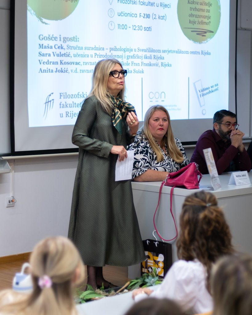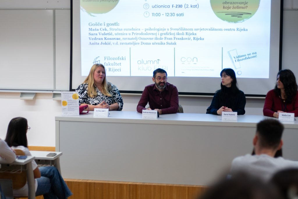 Raspravu je moderirala studentica pedagogije Sara Vitas, koja je potaknula raspravu i razmjenu iskustava među sudionicima i publikom.