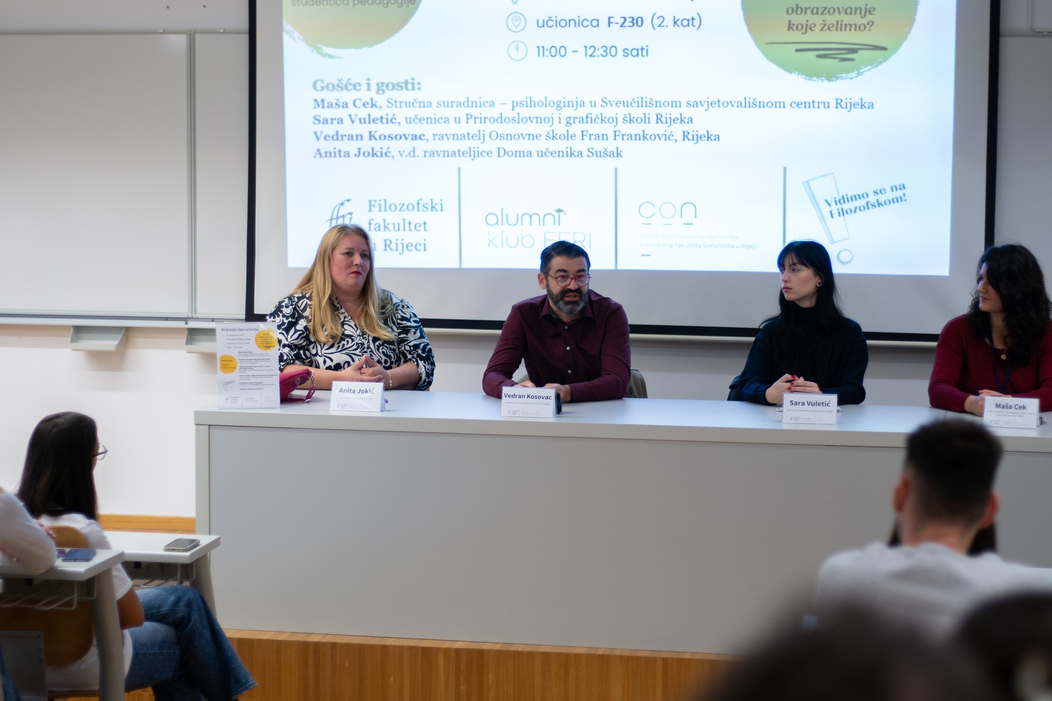 Riječi dobrodošlice uputile su prof. dr. sc. Irena Vodopija Krstanović, voditeljica Centra za obrazovanje nastavnika Filozofskoga fakulteta, i Ivana Miočić, voditeljica Alumni kluba FFRI.