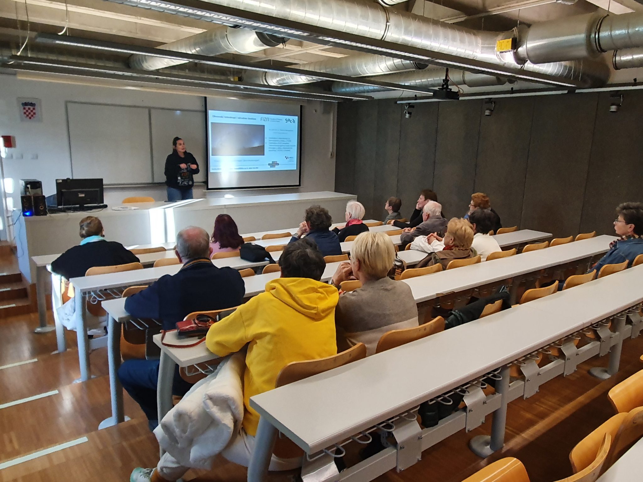 U srijedu, 19. ožujka 2025. u 17 sati na Filozofskom fakultetu održano je predavanje Divovski teleskopi i sićušne čestice izv. prof. dr. sc. Marine Manganaro u sklopu programa Sveučilišta za 3. dob.
