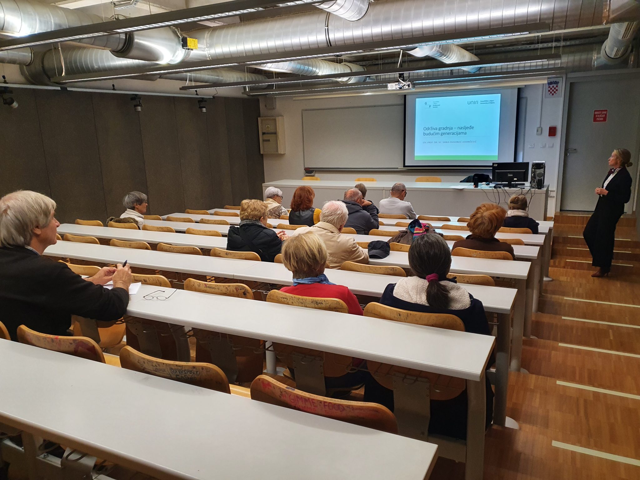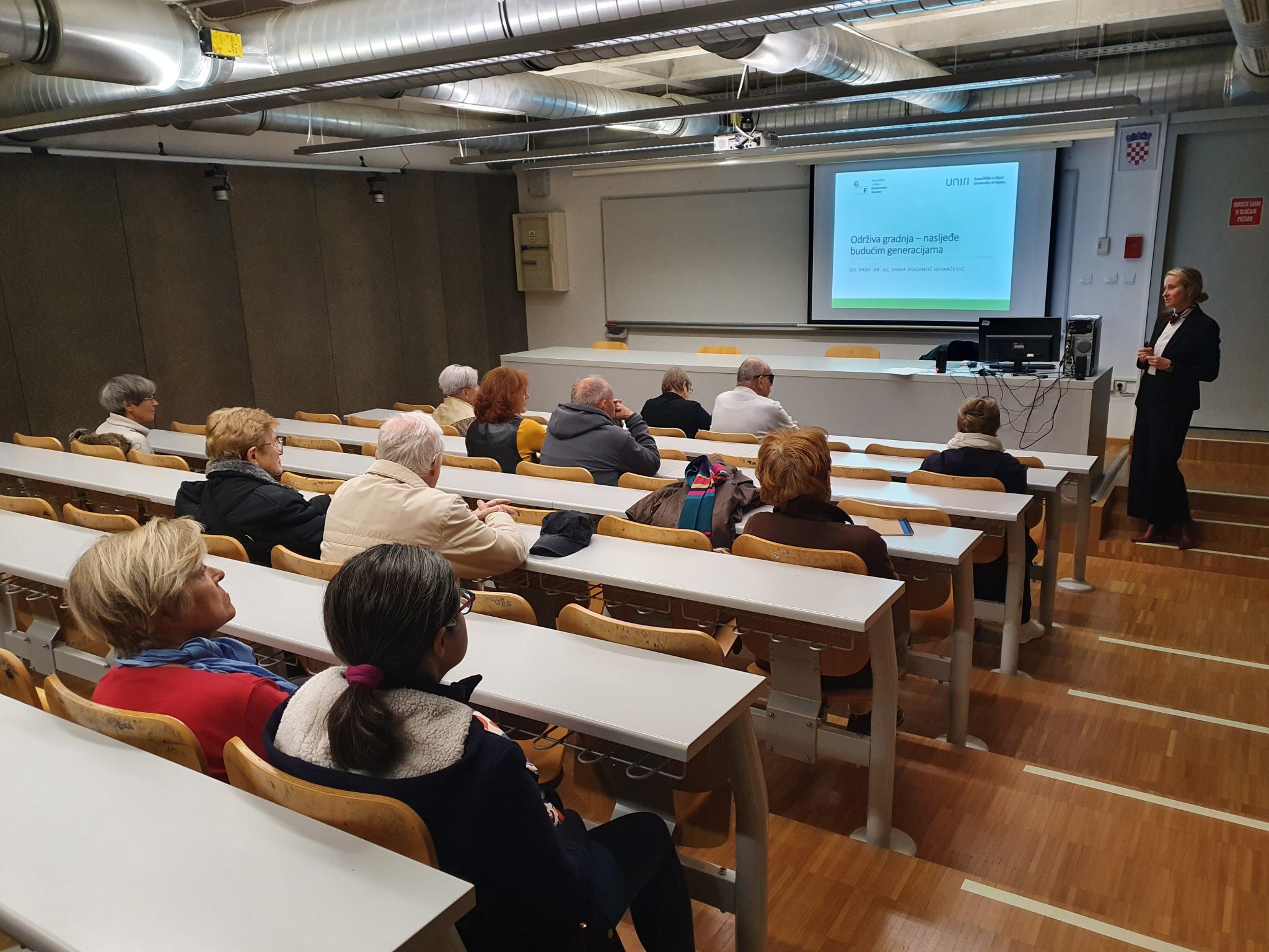 U srijedu, 19. studenog 2025. u 17 sati na Filozofskom Fakultetu u Rijeci u sklopu programa Sveučilišta za 3. dob, izv. prof. dr. sc. Sanja Dugonjić Jovančević održala je predavanje Održiva gradnja – nasljeđe budućim generacijama.