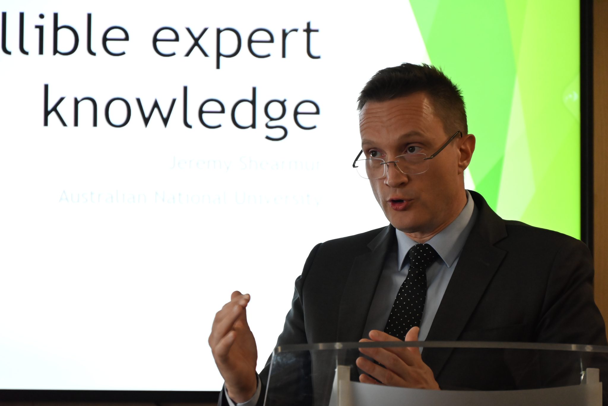 U predavanju pod naslovom Popper and the Social Use of Fallible Expert Knowledge, profesor Shearmur razmatrao je problem u znanosti gdje je znanje stručnjaka važno, ali nije nepogrješivo. Upravo zato smatra da društvo napreduje kroz otvorenu raspravu, kritičko preispitivanje i razmjenu različitih mišljenja i teorija. Ukazao je na ulogu koju različite institucije imaju u utjecaju na javne politike. Posebno je to važno u okolnostima korištenja društvenih mreža putem kojih ljudi više vjeruju vlastitim mišljenjima i vlastitom istraživanju, nego provjerenom stručnom znanju, što dovodi do nastanka dezinformacija, pseudoznanosti i teorija zavjere.