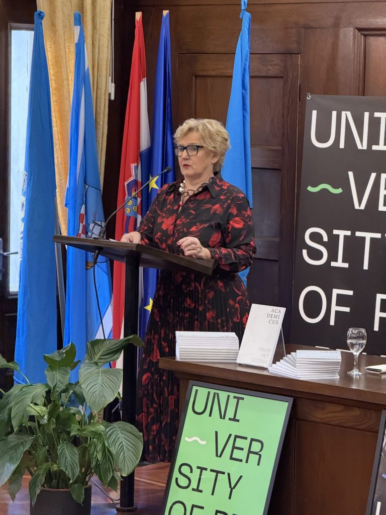 Uvodnu riječ o monografiji održala je prof. dr. sc. Snježana Prijić-Samaržija, u čijemu je mandatu osnovan Klub Sveučilišta za treću dob, a potom i preimenovan u današnji Academicus. „Iako je starenje tijela neminovno, ova monografija i ovaj Klub jasno pokazuju da duh i um ne stare na jednak način. Bez obzira na njezine autore, ova je monografija sadržajem i formom moderna i mlada. Razmišljajući o pravom načinu na koji treba predstaviti ovu knjigu, odlučila sam to sažeti u nekoliko ključnih riječi: ljudi, znanje, vrijednosti, otpornost i građansko prijateljstvo ili ljubaznost. Iako su ljudi danas postali neko opće mjesto, ništa se neće dogoditi ako nemate ljude, i to one posebne koje krasi neka unutarnja, plemenitija motivacija. Govoreći o znanju, uvijek sam razmišljala o tomu kako Academicus može pomoći nama, o toj kolektivnoj inteligenciji kojoj pridonose. Vrijednosti Kluba govore u prilog njegovoj humanističkoj misiji: međugeneracijska solidarnost, prijenos znanja i iskustva, otvorenost i zajedništvo te dobrobit i doprinos akademskoj zajednici. Riječ ‘otpornost’ u sebi sadrži još jednu, otpor, a Klub i njegovi članovi svim svojim aktivnostima i žilavošću prkose svim stereotipima i sveprisutnom ageizmu. I na kraju, Academicus je primjer empatičnog i korisnog ponašanja prema drugima, nešto što Aristotel naziva nesebičnom pomoći. U sebi objedinjuje otpor, empatiju, ljubaznost i želju za pravednošću i povećanjem ukupne sreće. Iskreno čestitam Academicusu na prvih pet godina i želim još mnogo uspjeha i aktivnosti.”