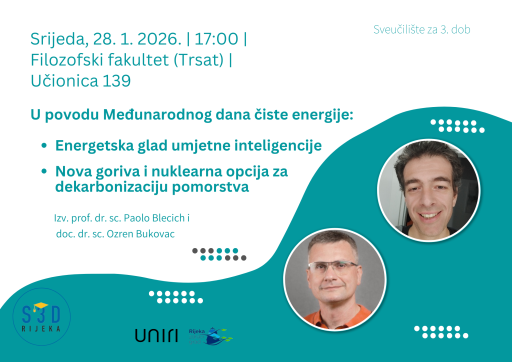 U povodu Međunarodnog dana čiste energije, u srijedu, 28. siječnja 2026. godine u 17 sati na Filozofskom fakultetu (Trsat) u učionici 139, 1. kat u sklopu programa Sveučilišta za 3. dob, održat će se dva kratka predavanja; Energetska glad umjetne inteligencije izv. prof. dr. sc. Paola Blecicha i Nova goriva i nuklearna opcija za dekarbonizaciju … Nastavi čitati S3D: Kratka predavanja u povodu Međunarodnog dana čiste energije
