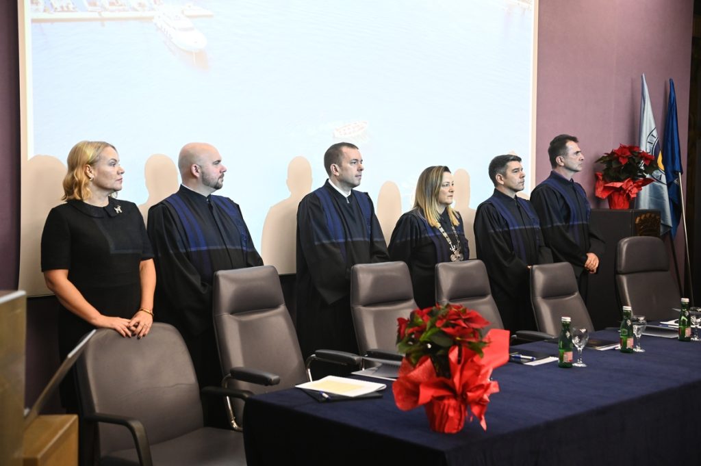 Kratko izvješće o radu Fakulteta u protekloj godini podnijela je dekanica prof. dr. sc. Ana Perić Hadžić, ističući kontinuiranu modernizaciju studijskih programa, rad na kvalitetnom, inovativnom i učinkovitom obrazovanju te stjecanju stručnih kompetencija. Iz godine u godinu Fakultet se prilagođava trendovima u obrazovanju i novim generacijama studenata, zbog čega se stalno uvode novosti. Ove je godine tako izrađena kontrolna soba s osnovnim elementima za kontrolu i nadzor pogona, Fakultet se može pohvaliti novim istraživačkim laboratorijem Zavoda za brodsko strojarstvo i energetiku, a sljedeći je korak zakoračiti i u područje virtualne i proširene stvarnosti.